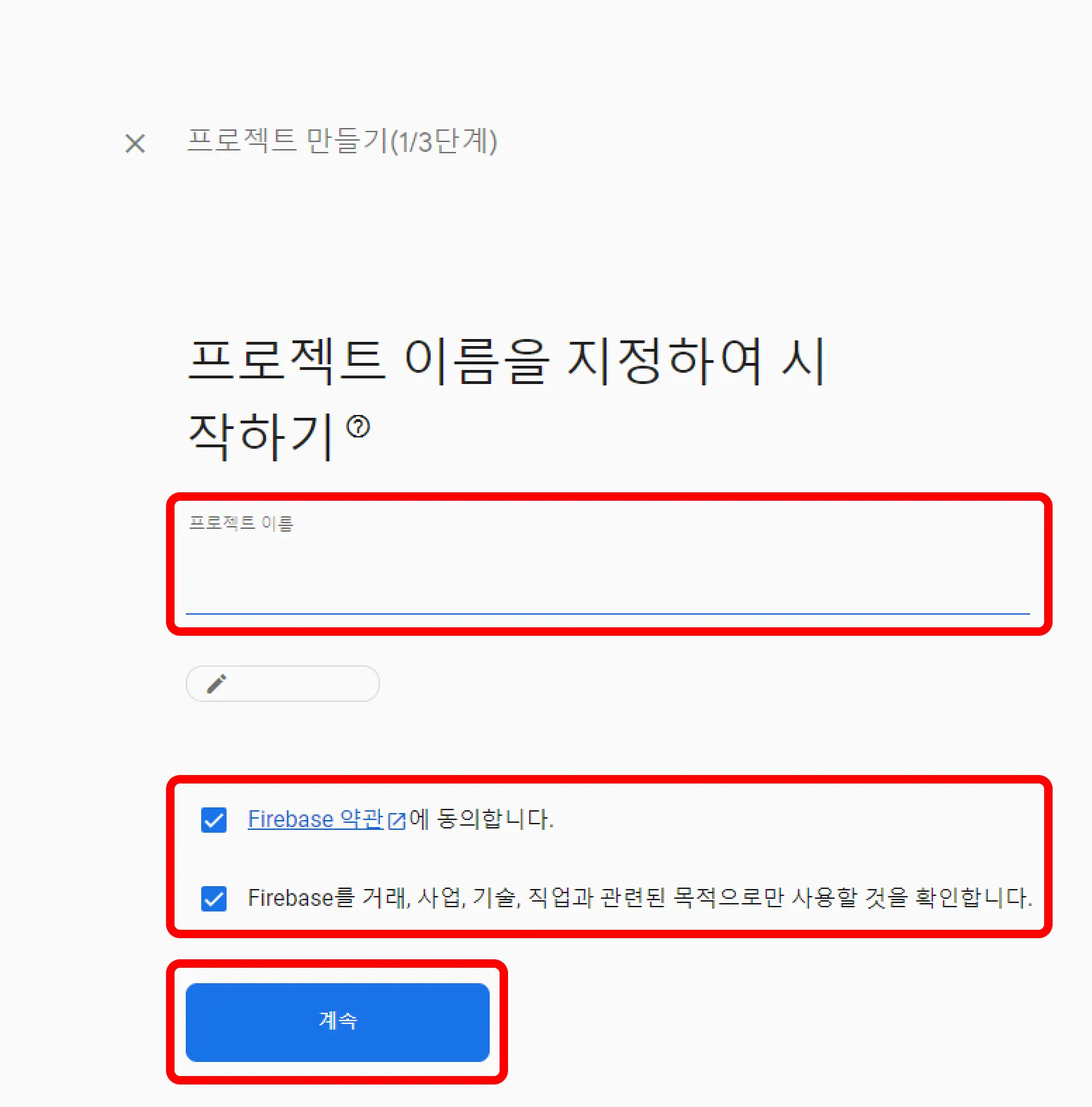 프로젝트 만들기 페이지에서, 다음 항목을 차례대로 입력합니다.