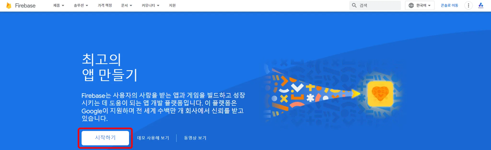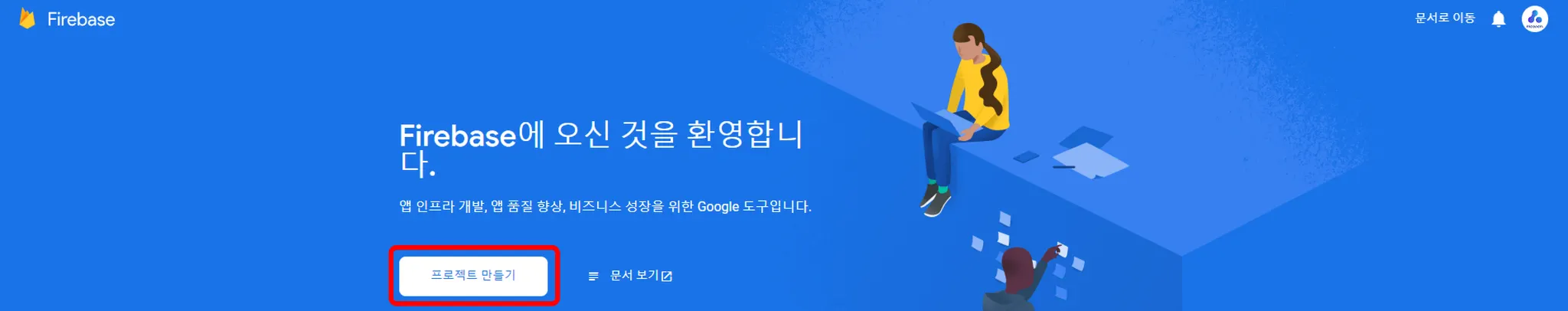 Firebase 메인 화면에서 프로젝트 만들기 버튼을 클릭합니다.