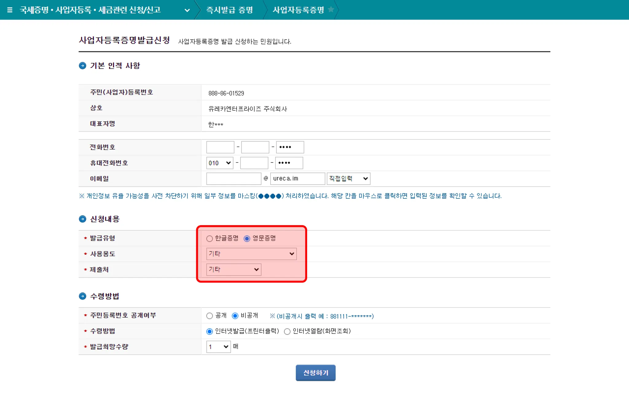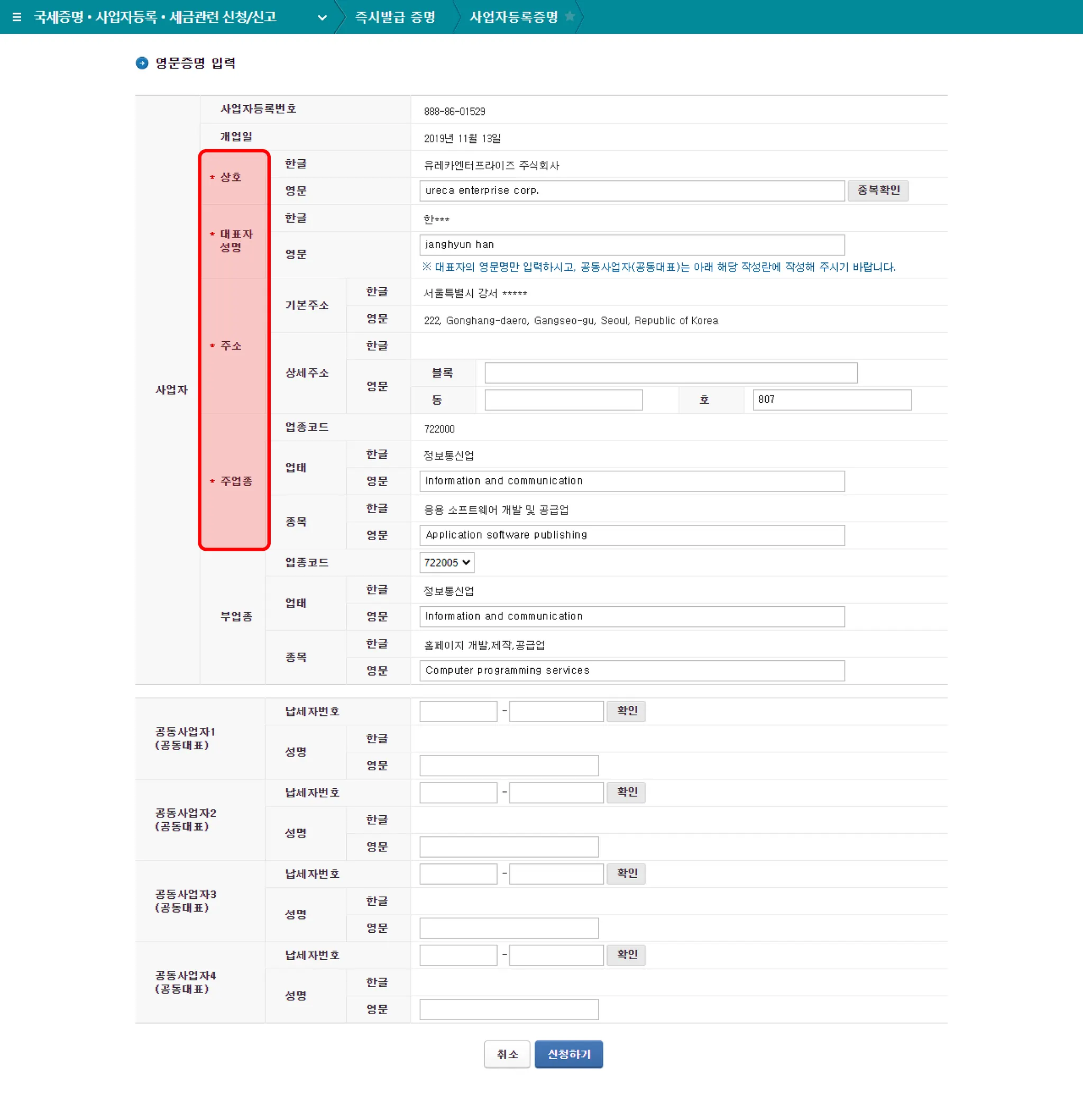 [세무] 영문사업자등록증명 발급하기
