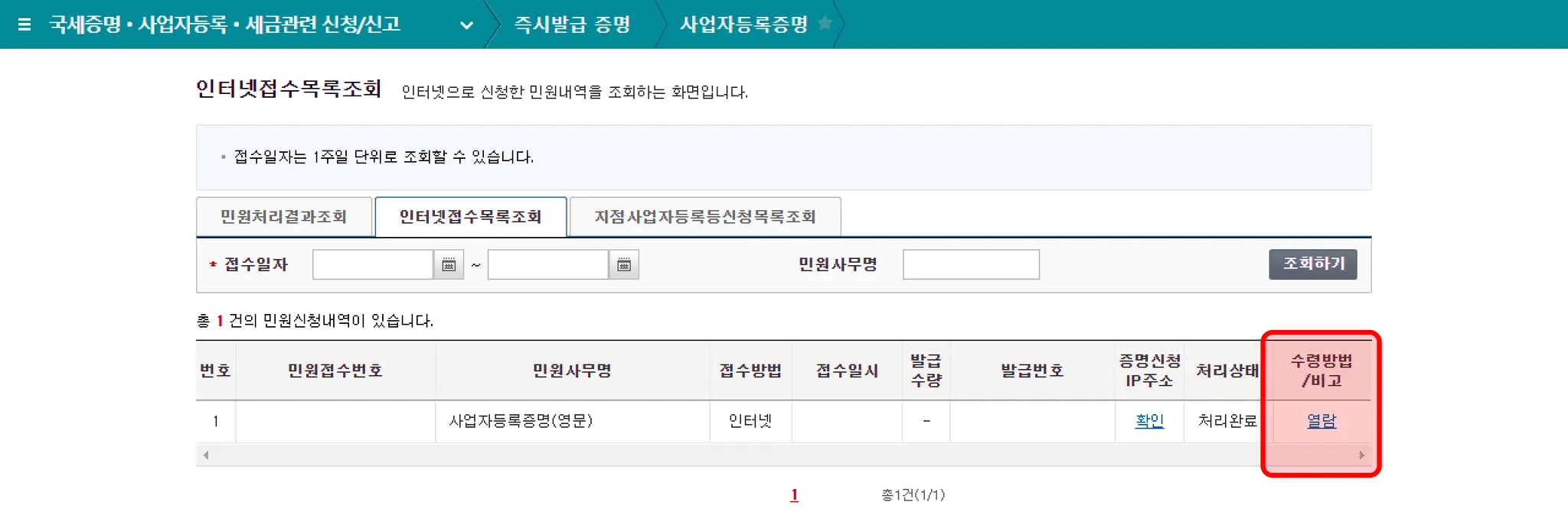 인터넷 발급의 경우 열람 버튼을 클릭하여 조회할 수 있으며, 인쇄 발급의 경우 인쇄하실 수 있습니다.