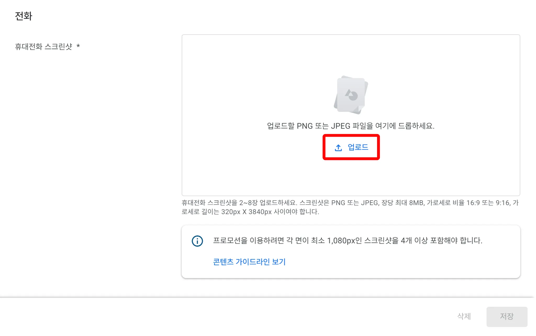 휴대폰 스크린샷을 등록합니다.
