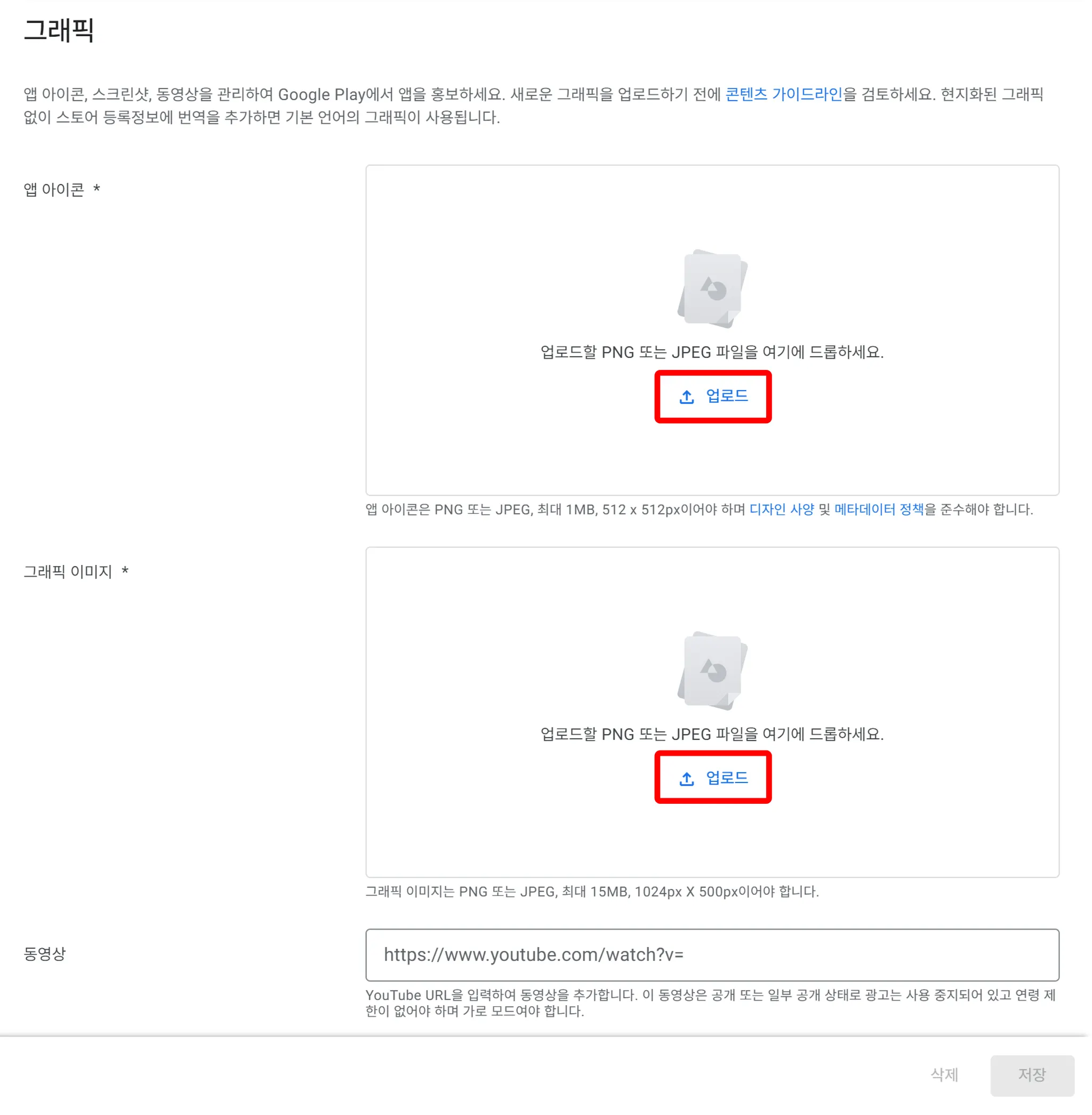 앱 아이콘, 그래픽 이미지를 등록합니다.