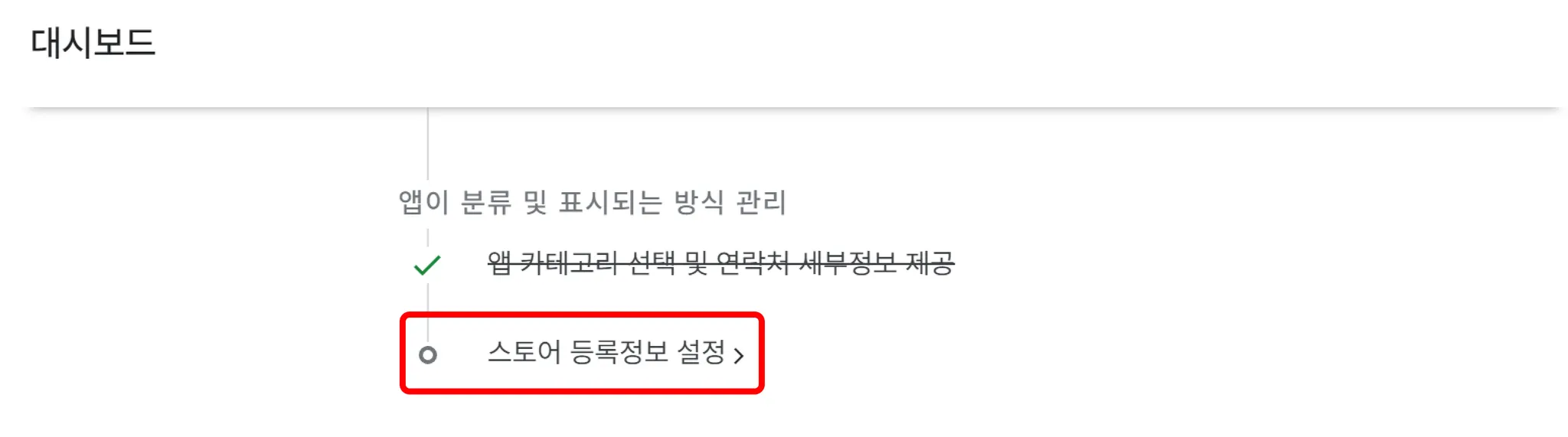 대시보드에서 스토어 등록정보 설정을 클릭합니다.