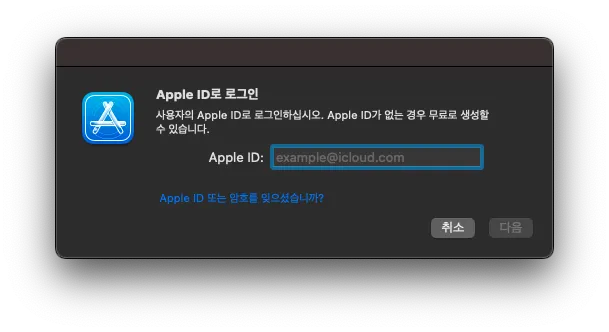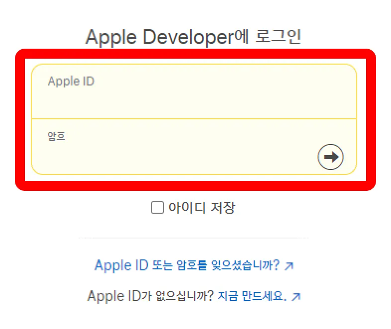계정을 정상적으로 생성하였다면, 애플 로그인 페이지에서 해당 계정으로 로그인합니다.