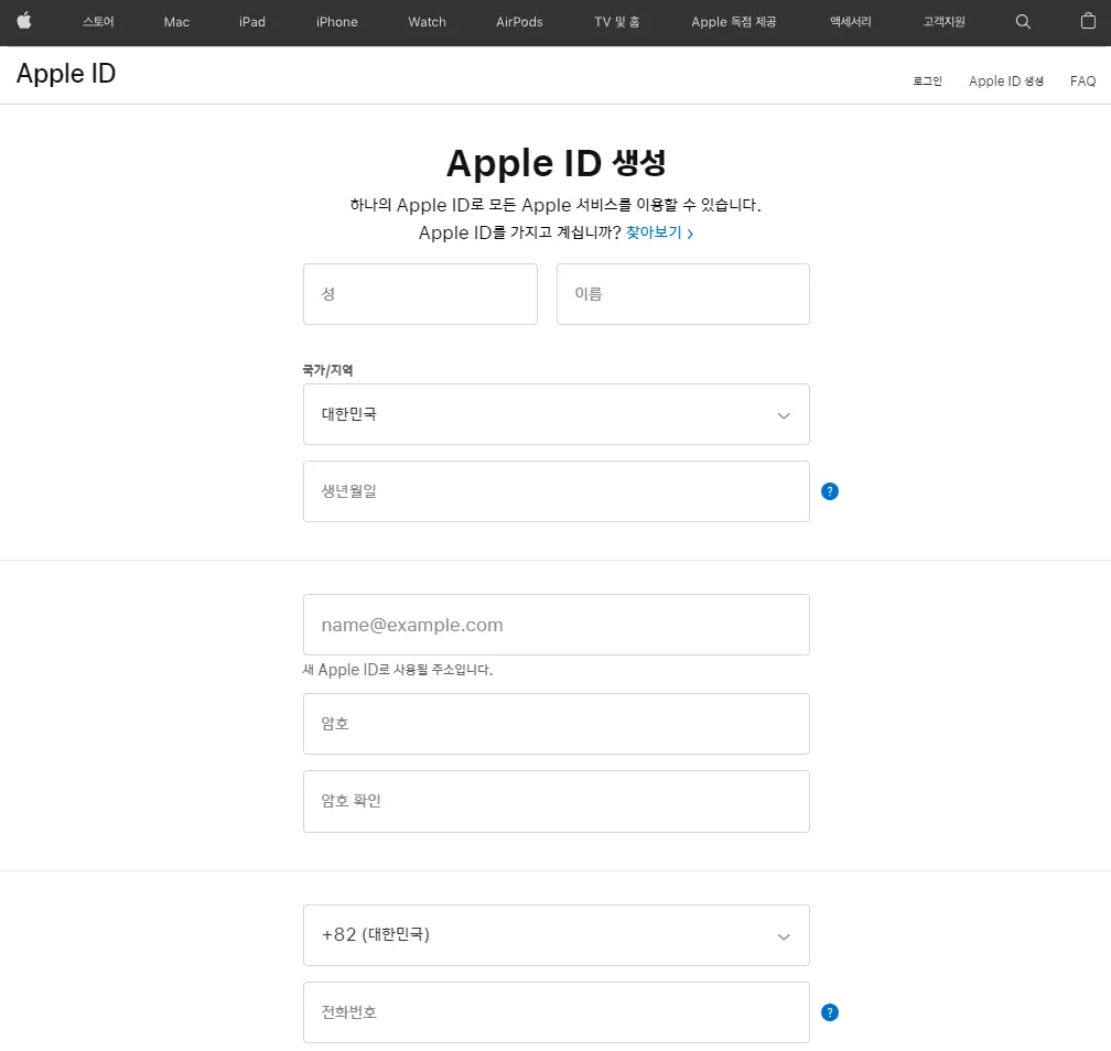 본 문서에서는 애플 계정이 없다는 가정 하에 설명합니다.