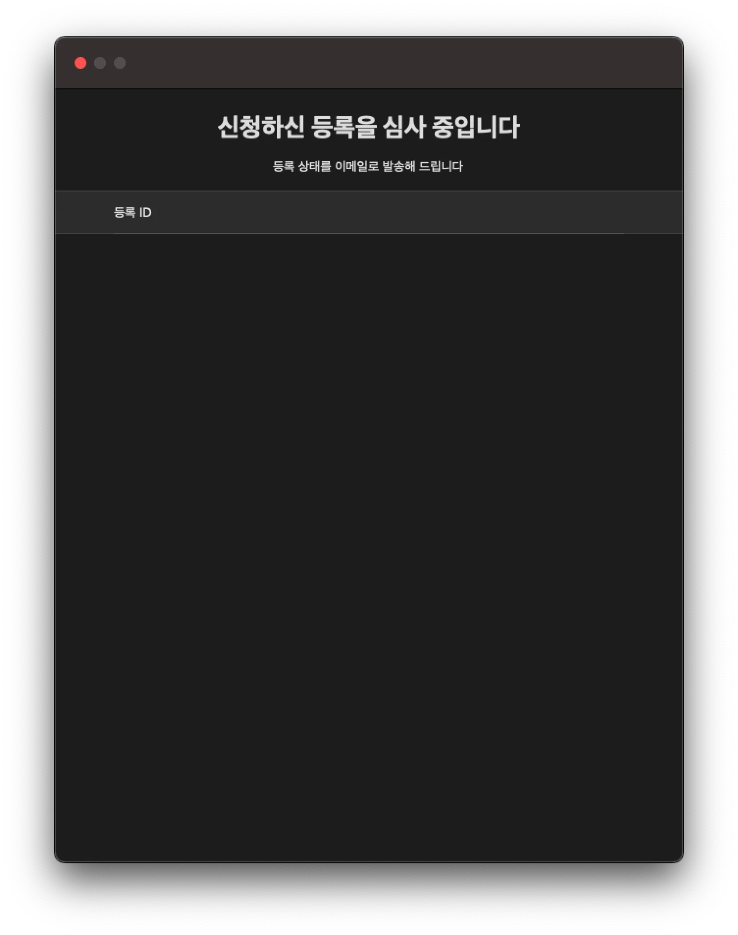모든 절차가 왼료되면 다음과 같은 창이 보이며, 며칠 이내에 이메일이 전송됩니다.